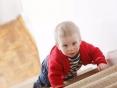 当宝宝能站稳时,就会扶着东西试探地向前走几步。这时爸妈要做的是给家具安上防护栏,保证尖尖角角不会伤到宝宝。