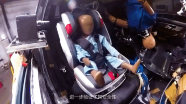 360儿童安全座椅的碰撞测试由清华大学苏州汽车研究院的汽车碰撞实验室完成,通过国际先进的加速器模拟碰撞试验台设系统,进行了多次的动态碰撞测试,同时还进行了50km/h的正面和64km/h的正面偏执碰撞实验(50km/h测试实车G值为30G;瞬时速度 294m/s²),以此来验证这款儿童安全座椅的安全性能。