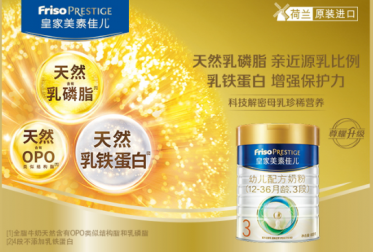 皇家美素佳儿注册配方特别添加了乳铁蛋白,为了提高宝宝们的免疫力,成分尽可能地接近母乳标准,含量高达450mg/100g。中国营养学会妇幼营养分会,在2018年8月18日发布的《乳铁蛋白婴幼儿健康效应专家共识》中表示:牛乳铁蛋白添加到奶粉中具有降低婴幼儿腹泻、新生儿坏死性小肠炎的发病率,提高儿童幽门螺杆菌的根除率等效果。所以,补充乳铁蛋白的益处是值得肯定的。并且皇家美素佳儿天然含有乳磷脂,接近源乳比例,能够一定程度促进DHA\AA等关键脂肪酸吸收和帮助宝宝脑部发育。另外,天然含有的OPO类似结构脂,也可相对减少夜间宝宝的哭闹,这些营养成分都能起到助力宝宝的健康成长的作用。
