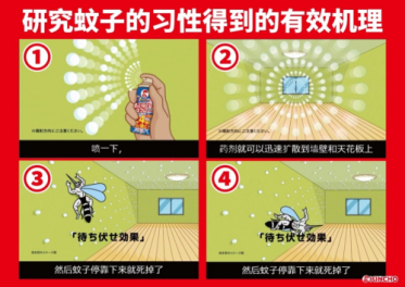 要知道蚊子停留在墙壁和天花板上的时间远远超过飞行时间,一般的驱蚊喷雾会随着空气流动而失效,KINCHO金鸟杀蚊防蚊喷雾则不易受到房间换气的影响,能持续长时间稳定的效果。对蚊子有着详尽了解的KINCHO金鸟将喷雾药剂设计成大粒子可以牢牢地吸附在墙壁和天花板上,有效驱蚊的同时可以更持久地维持效果呢。