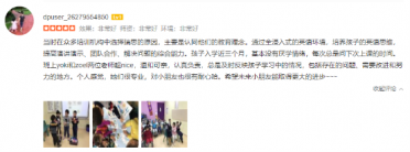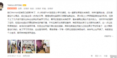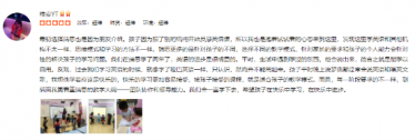 “当时在众多培训机构中选择上海瑞思的原因,主要是认同他们的教育理念。通过全浸入式的英语环境,培养孩子的英语思维,提高演讲演示、团队合作、解决问题的综合能力。孩子入学近三个月,基本没有厌学情绪,每次总是问下次上课的时间。班上Yoki和Zoel两位老师超nice,温和可亲,认真负责,总是及时反映孩子学习中的情况,包括存在的问题、需要改进和努力的地方。个人感觉,她们很专业,对小朋友也很有耐心。希望未来小朋友能取得更大的进步~”