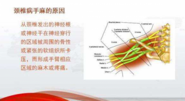 手部的神经都是从颈部脊髓发出,一路沿着胳膊达到手指,神经根受到刺激,手部虽在远端也会发麻。