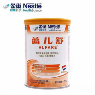 蔼儿舒奶粉来自荷兰原装进口,适用于0-1岁因各种原因引起的胃肠功能不适和喂养困难的婴儿。雀巢蔼儿舒是一款具有特殊医学用途的配方食品,作为特医食品,蔼儿舒符合我国最新、最严格的食品标准。蔼儿舒奶粉是100%乳清蛋白深度水解配方奶粉,由80%的短肽和20%的游离氨基酸组合而成,易于宝宝耐受和消化吸收。乳清蛋白是从牛奶中提取的一种蛋白质,含有组成蛋白质的全部20种氨基酸,其必需氨基酸含量高于普通食用蛋白质。乳清蛋白中的胆固醇和钠含量低,钙高营养价值居各种蛋白质之首。