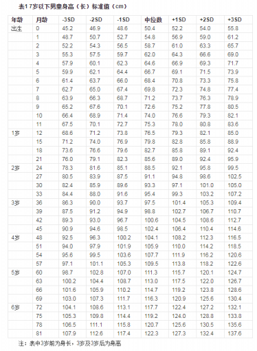 根据儿童体格发育调查结果,国家卫生部组织相关专家研究制订了《中国7岁以下儿童生长发育参照标准》,该标准已于2009年6月2日由卫生部正式公布。标准包含了7岁以下男童的身高、体重、头围、平均值标准和女童的身高、体重、头围、平均值标准。因为 男孩和女孩的发育情况不同,家长可参考以下表格数据,看看孩子的身高体重是否正常。