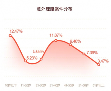 根据<中意人寿2020年年报>,10岁以下是发生意外风险的高峰期,达到了12.47%,。可以看到,在整个生命周期里面,孩子是非常容易受到意外的伤害。