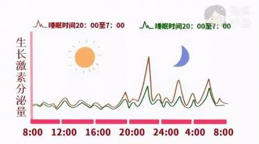 从上图中,我们不难发现,白天,生长激素分泌比较少,但是,到了晚上,尤其是十点到第二天的凌晨一点,生长激素分泌达到了峰值。