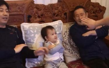 但宝宝似乎并不满足,看到爷爷正翘着二郎腿,于是孩子也非常想学习,但这个对于宝宝来说可能有些难度,宝宝试了好多次都没有成功。