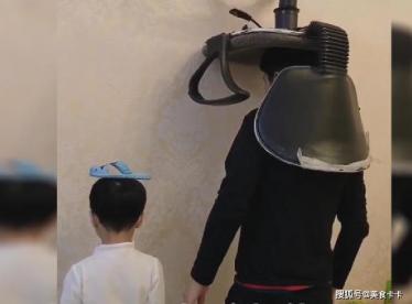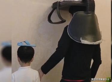 画面中,我们可以看到这位“超怂奶爸”带着宝宝一起跪着面壁思过,最为主要的是,奶爸的头上还顶着一个大大的凳子,看上去都非常的吃力,而宝宝也没有躲过一劫,头上的拖鞋也很是抢镜,两个人就这样老老实实跪在地上面壁思过,而一旁的妈妈拿着棒槌正在严肃的监督着正在面壁的父子两人,难怪两人可以如此认真的面壁,原来威胁就在眼前,真不愧是两个同姓的干不过一个外姓的。