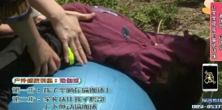 第一步:孩子平躺在瑜伽球上