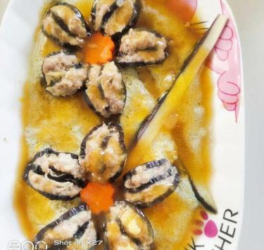 推荐理由:茄子中维生素E含量较高,有防止出血和抗衰老的功效,是补血补铁的好物,切开里面放入肉馅,放在蛋液上蒸熟,成品会很惊艳。