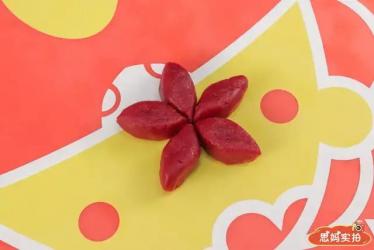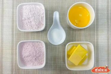 食材:甜菜根面粉深色(30克甜菜根面粉+35克低筋面粉)、甜菜根面粉浅色(15克甜菜根面粉+50克低筋面粉)、白砂糖10克、黄油50克、全蛋液55克