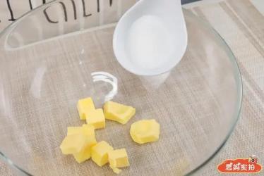 25克的黄油,切成小块,室温软化,用手指轻轻按压可以按出个小坑就是软化好的状态。