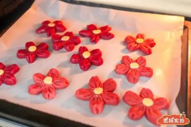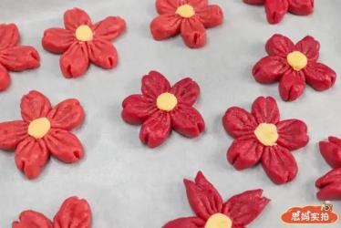 tips:每朵樱花瓣的厚度差不多有0.5cm,做的时候注意一下,最好都差不多厚,这样烤出来的口感才好。