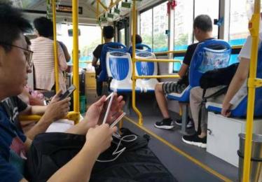 但是经过几站之后,公交车上的人越来越多,一些慢上车的人就只能在车厢中站着。