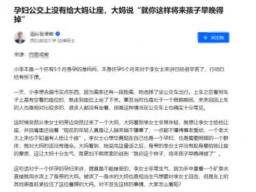 大妈让孕妇让座遭拒,大骂“宝宝早晚会掉”!孕妇的反击网友称赞。