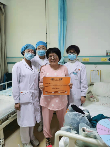 早上8点30分交完班后,科室李再主任、麻俊琴护士长带着护士们进病房,一一为宝妈们送上祝福与礼品。