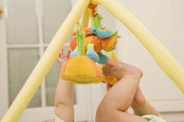此时可以训练宝宝的两眼协调能力。妈妈可以拿一个色彩鲜艳的玩具放在不同距离的地方,让宝宝爬过去拿。在这个过程中不仅锻炼了两眼的协调能力,还有助于促进宝宝的大运动发育,为学会走路做好准备。
