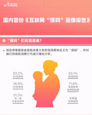 听说过“宝妈”,但你知道“保妈”吗?母亲节将至,长期保障线上龙头蜗牛保险于5月6日发布国内首份《互联网“保妈”画像报告》(简称“报告”),率先将掌握家庭保险决策大权的宝妈群体定义为“保妈”,并对她们的保险消费行为进行描绘分析。