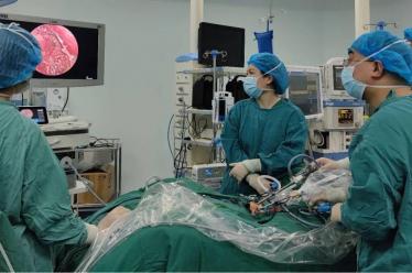 围产儿外科主任陈功立认为,腹腔镜具有良好的放大效应和空间视野,能够更为直观、充分地显露骶前血管、神经,于是实施了腹腔镜下骶前畸胎瘤切除术,完整切除了新生儿的骶前包块,赶走了排尿排便的拦路虎,把可能因骶前血管破裂,引起大量失血的这颗“定时炸弹”彻底排除了。术中出血仅10ml,术后瘤体病理结果为良性畸胎瘤。经过新生儿科护理人员的悉心照料,术后小宝宝吃奶、大小便均恢复正常,最终顺利出院。
