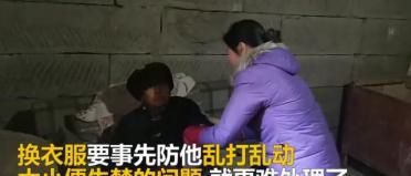 由于公公无法控制自己,会把尿不湿当成食物吃,所以儿媳只能给老人频繁换洗裤子,平均两小时要换三次衣服。
