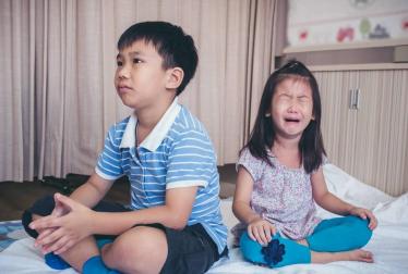 过了一会儿,莫南在厨房就听到妹妹的哭声,关掉火,跑到客厅,发现大宝又在欺负妹妹,把妹妹的娃娃弄坏了,还捂妹妹的嘴巴,让她不要出声。