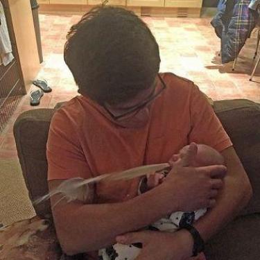 曾经看过一个视频也很尴尬,宝宝刚喝完奶,爸爸非要将宝宝亲亲抱抱举高高,然后宝宝直接吐奶吐到了爸爸的嘴里。(图比较重口味,就不放了)