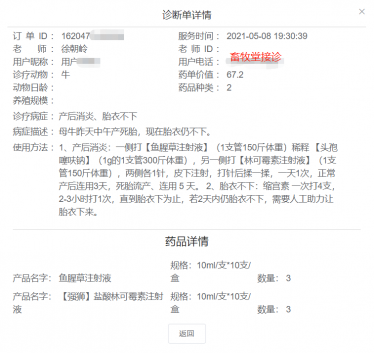 对于母牛的胎衣不下,徐老师建议先用缩宫素注射,2天内若胎衣不下再人工助力剥离胎衣。同时母牛产后还有炎症表现,徐老师也给出了相应的治疗方案。具体治疗用药方法如上图。