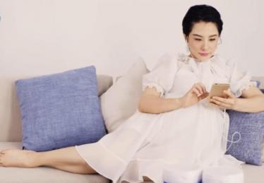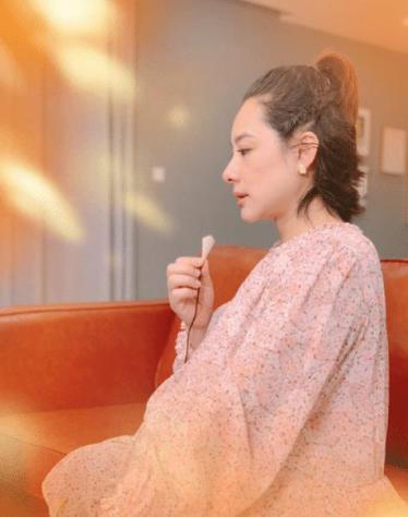听着音乐的刘璇眯眼小憩,一手撑头,一手轻抚孕肚,满脸都是幸福的样子。