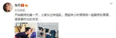 所谓时光匆匆,正是因为有女儿小小丹陪伴。朱丹先是晒出了一张自己生女儿后恢复锻炼的照片,照片中,朱丹素颜出镜头扎丸子头正在与女儿小小丹顶头互动,透着满满爱意。