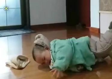 当然这还没完,随后又把弟弟的皮球已经扔出来了,对此弟弟表示超委屈,趴在地上就哭了起来!