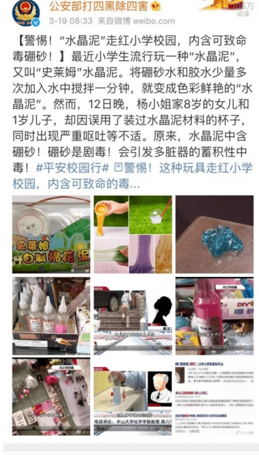 近日,央视新闻报道了这款网红玩具“史莱姆”水晶泥硼砂超标的问题。