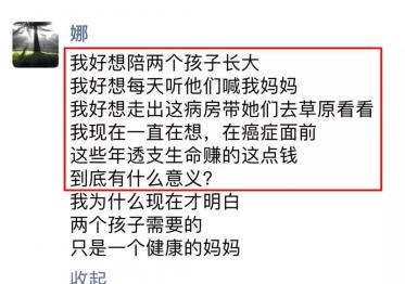 想到自己就这样离开,孩子没了妈妈,自己的妈妈也失去了女儿,丈夫的担子更重了,照顾四个老人与孩子,要是真到了这一天可怎么办呢?