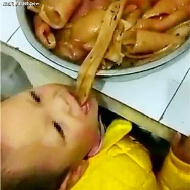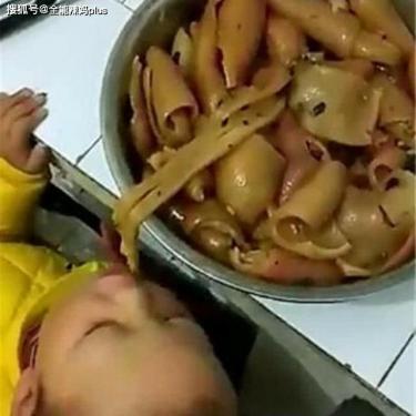 原来是因为宝妈做了一大锅卤肉,孩子睡着睡着被香味馋醒了,于是自己跑到厨房开始寻觅美食。等到妈妈走到厨房时,发现孩子踮着脚,正伸着脖子,努力的用手抓着灶台去咬盆里的美食吃呢。