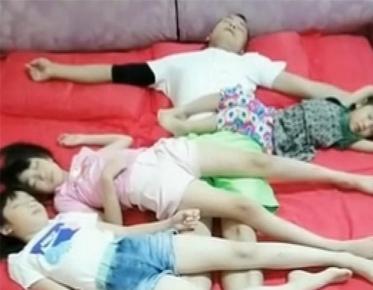 为什么会议论呢?因为这这段视频中,网友看到了爸爸和3个女儿都穿着短衣短裤,小女儿年龄小到没什么关系,但是大女儿和二女儿看上去年龄不小,都有十二三岁了还和爸爸睡在一起。