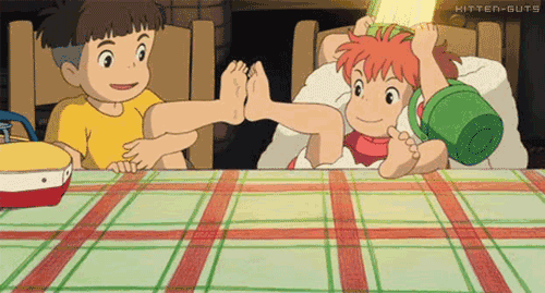 一开始,两人摊开作业本,还没写就开始有说有笑地吃水果,时不时说点动漫的事情。