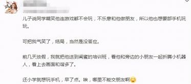 曾看到一个博主说,儿子因为不会玩手机游戏被同学嘲笑,不愿意和他做朋友,于是儿子也想要个手机。