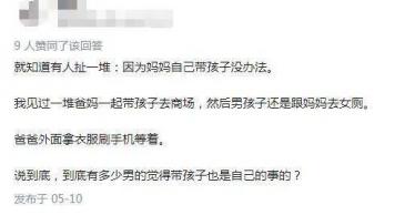 就像一个网友所说,我见过不少爸妈带孩子一起去商场,然后男孩子还是跟妈妈去女厕。