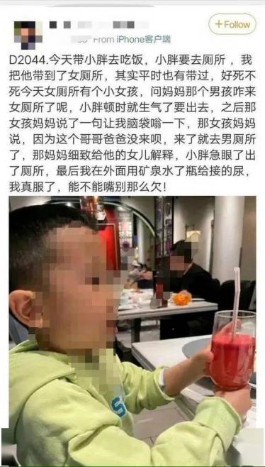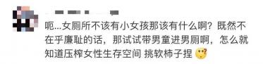 这次“男童进女厕”事件的留言区,我看到这样一个评论: