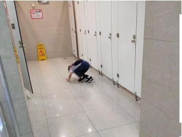 不过,在这里要提醒下家长们,当你麻烦商场工作人员带孩子进厕所时,自己一定要在门外等着,你可不能到处瞎晃悠。