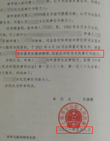 马老如今跟小游一家生活,由小游全职照顾如今法院出具的认定马老无民事行为能力的鉴定结果,是在4月14日出具的,并不能认定马老在做意定监护的时候不具备民事行为能力。
