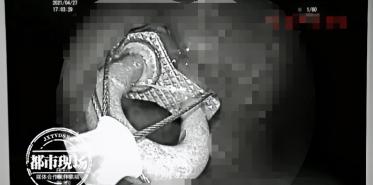 为了尽量减少对身体的伤害,医生决定通过内镜来取出,仅耗时7分钟左右,医生就成功将这把金属锁取出。