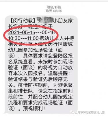 还有普陀区现场验证时间为6月12日~13日;金山区为5月29日和30日;嘉定区非示范园现场验证时间为6月10日~12日;青浦区实验幼儿园以外的公办园验证时间为6月5日、6日、12日。因此没有收到验证短信的家长也不要着急!