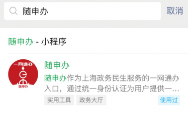 △ 在微信小程序中搜索“随申办”