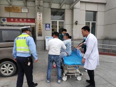 5月20日下午16时55分,商城县交警大队达权店中队民警正在辖区国道G220陶行路段执勤,此时一辆长安面包车紧急停在路边,车上的司机下车求助交警说他的车上有位孕妇大出血,急需送到商城县人民医院,我们从长竹园乡下来已经耽误了半个小时,担心城区堵车危及孕妇生命,请求交警同志给予帮助。