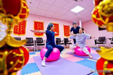 5月26日,河西学院附属张掖人民医院产科的党员和团员医护人员正在指导孕妇用分娩球减轻心理压力进行导乐分娩。
