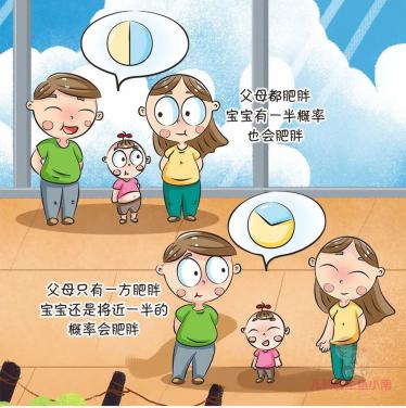 肥胖也要看爸妈,父母父母都肥胖,宝宝有一半概率也会肥胖,如果父母只有一方肥胖,宝宝还是将近一般的概率会肥胖。特别是妈妈肥胖的话,这个概率还会再往上走一点。