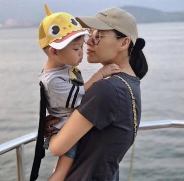 这次她抱着儿子,觉得儿子太可爱了,尤其是肉肉的脸,让人觉得特别好笑。而且,她头上戴着一顶有趣的帽子,她穿的衣服看起来很可爱。