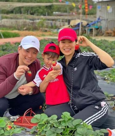 其实他们的家庭生活都比较幸福。这时,他们出去摘草莓了。我们可以看到他们的孩子都很可爱。而且,胡杏儿这次穿了这套西装,选择了运动风格的设计,看起来比较休闲。