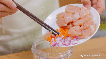 切好的小丁加入到料理机当中。