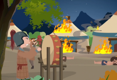 第二天,死刑执行时刻到了,士兵站在绞索下面请求唱一首歌。这时的请求,国王是不能不同意的,士兵拿起金话筒,唱过歌后,狮子老虎豹子恭恭敬敬地站在士兵面前,等待命令,围观的人都惊呆了,士兵说:“请帮助我,我不想被绞死。”三只猛兽立刻冲往法官和刽子手,国王和国王的卫队也被冲散。一会儿,这些人,死的死,逃的逃,伤的伤,国王大概也逃回皇宫去了。